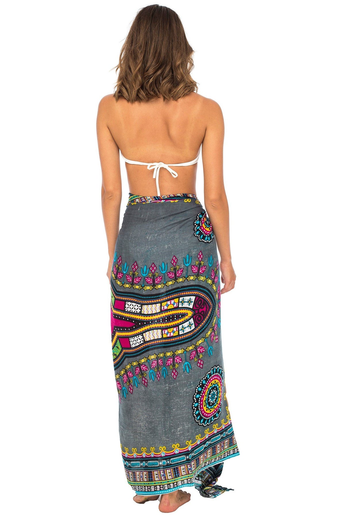 Ethnic inspired grey calypso colored sarong swimsuit cover up, gives you style and comfort at the beach, poolside, lounging on a hot summer day or on your next tropical vacation.